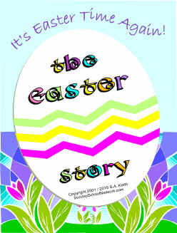 Contains 10 egg-shaped cards of the Easter Bible story from the classic King James Version, and 2 egg-shaped cards with black and white line drawings for children to