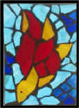 I enjoy looking at the broken glass--it is beautiful. It reminds me of our relationship with God; how even though we are created in his beautiful image, sin has broken our lives. The uncut sheets of glass are uniquely beautiful, but if they remain isolated, they cannot become part of the mosaics. Is this not what God, the Master Artist, does with his children? He rescues us from brokenness and isolation, and then places us into a mosaic of believers, where together we are formed into the image of his beloved Son.