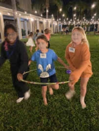 How to Play: three players from each team begin with one player who needs healing standing inside the hoop and the other two holding onto the hoop. The player inside the hoop must hop on one foot, while holding onto the hoop. At the go, the two players carefully "carry" their friend to the cross, where they all say, "Jesus died on the cross to forgiven our sins!" and then remove the hoop, lock arms, and race back to their team line carrying the hoop, at which time they either tag off to the next three players in line or switch positions in the hoop to be the friend who needs healing.