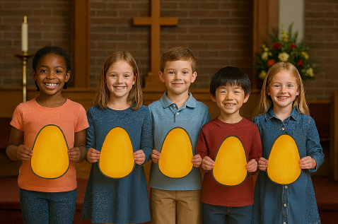 of the five kernels of corn into five parts and wrote them on the back of paper corn kernels, cut from yellow construction paper. Each child reads what’s written on the back of a kernel, and then everyone says the Bible verse together. Afterwards, the youth choir can sing a Thanksgiving song.